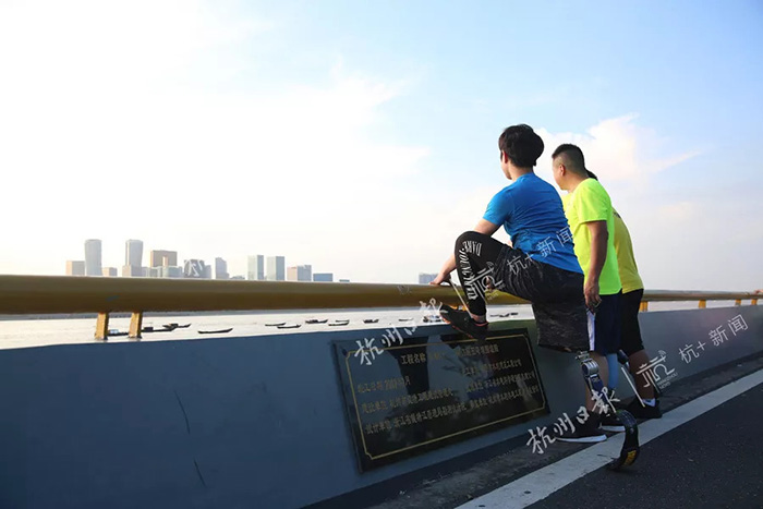 學(xué)會跑步后,他還帶起了徒弟,同單位的另兩個假肢女孩小董和小鄭,都是他教會的。小董還成了黃榮杰的女朋友,今年也準備參加杭馬,挑戰(zhàn)自己。