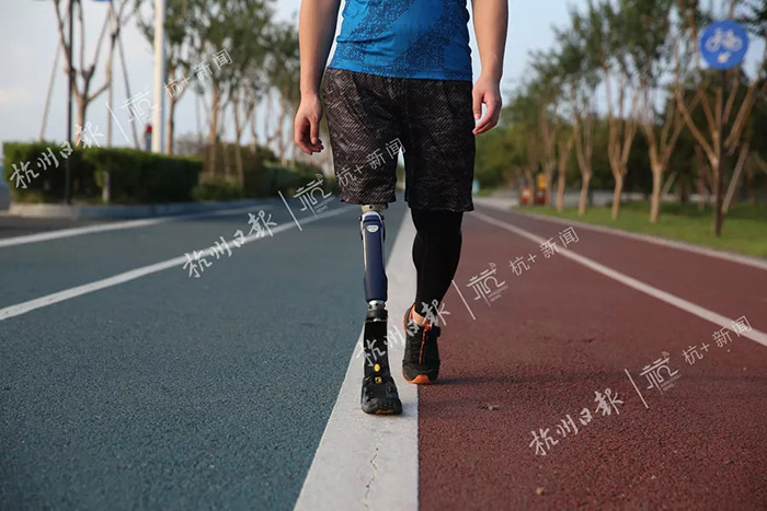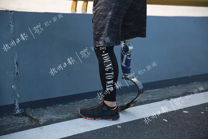 “在醫(yī)院住了20多天就出院了,大概恢復(fù)一兩個月,裝了假肢,我又回學(xué)校去繼續(xù)念書。”由于在廣東當?shù)匮b的假肢并不是很舒服,黃榮杰在網(wǎng)上聯(lián)系到了杭州一家假肢矯形器公司的馮偉,經(jīng)他介紹在2016年來了杭州,更換假肢。