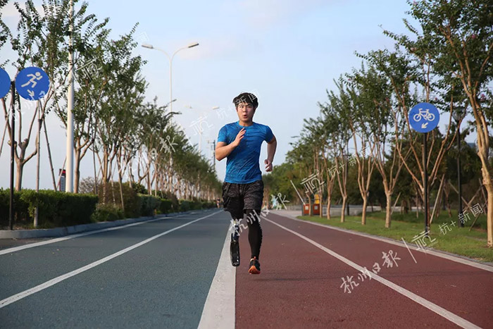 換上假肢后,黃榮杰需要一段時間來適應(yīng)這個身體的新部件,同時,他很困惑:如何還能像過去那樣快樂地去運動呢?武術(shù)肯定不行了,連個馬步都扎不了。