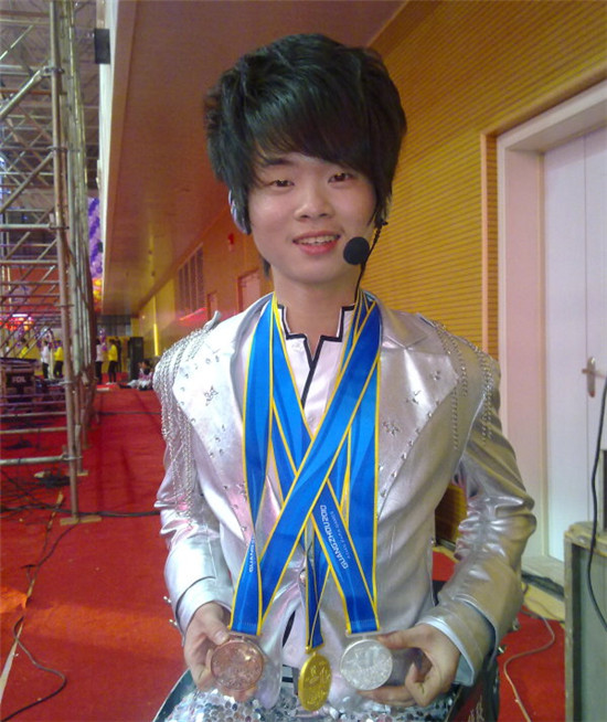 入學(xué)后,繆忠斌不但勤奮好學(xué)還積極參加各類活動,一次偶然的機(jī)會讓繆忠斌接觸到了福建省殘疾人藝術(shù)團(tuán),舞蹈對于只有一條腿的繆忠斌來說無疑是個(gè)巨大的挑戰(zhàn),但他想都沒想就參加了。一次練習(xí)跳鼓時(shí)由于鼓太高,繆忠斌被絆倒,殘肢重重地撞擊地面,使得他當(dāng)場痛暈過去,醒來后殘肢大腿關(guān)節(jié)腫了起來,假肢完全沒法穿了。當(dāng)時(shí)已臨近比賽,藝術(shù)團(tuán)老師勸他好好養(yǎng)傷放棄比賽。誰也沒有想到,休息不到一個(gè)星期還沒痊愈的他提出并再次加入排練隊(duì)伍。為了跟上排練進(jìn)度,追求完美的他在每次排練結(jié)束大家都離開時(shí),獨(dú)自留在排練廳里繼續(xù)練習(xí),最后他參加的《鼓舞人生》獲得了第七屆全國殘疾人藝術(shù)匯演二等獎。